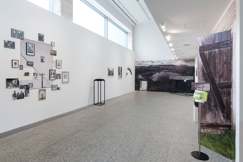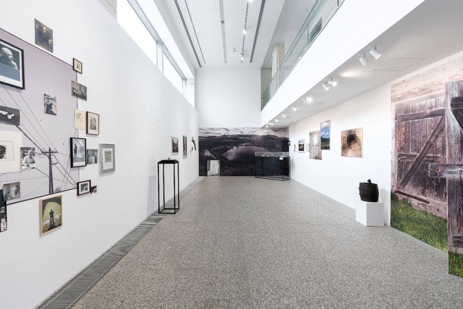 A terem végében egy egész falat lefedő monokróm tapéta jelenik meg egy erdőbényei bányató látképéről, amelyben minden addigi apró részlet helyet kap egy falra vitt nagy egészben, elérkezve bentről kintre. A jobb alsó sarokban szintén egy nagyobb keretezett képen gyűlnek össze az üvegdarabok, és vetnek árnyékot nagyságuk szerint. Majd a terem végéből megfordulva, visszafelé indulva lehet csak észrevenni azt a kiállítás tere fölé kifeszített, ruhaszárítócsipesszel rögzített vásznat, amelyen egy másik kifeszített vászon szerepel: rajta Ludwig Stein kézírása és a szárított virág. Ez a mozzanat összesűríti a hatalmas mennyiségű időt, és egymásba nyitja az addigi holtágakat.