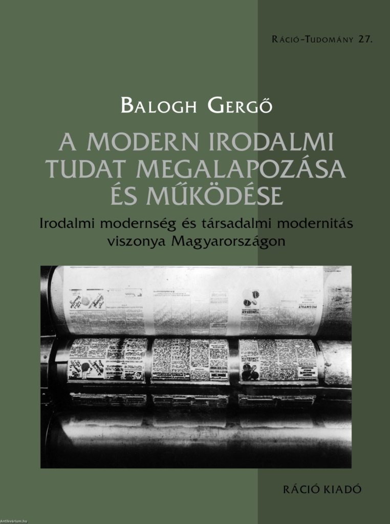 Balogh Gergő: A modern irodalmi tudat megalapozása és működése. Irodalmi modernség és társadalmi modernitás viszonya Magyarországon, Ráció Budapest, 2023